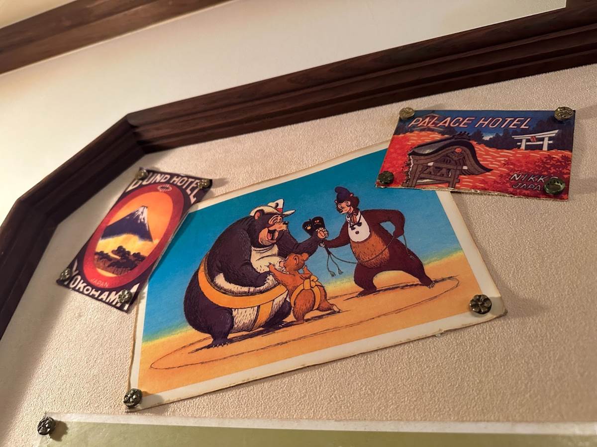 I delighted in this fun East-meets-West moment in the lobby of the Country Bear Theater, which is full of photos and accolades from the bears’ successful tours around the world. Among them was this image from Japan of Big Al and Oscar in a dohyō about to sumo wrestle, with Henry acting as the gyōji.