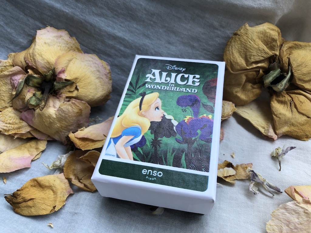 We’ve got a Cheshire Cat grin on our faces because there’s some exciting news to share! Enso Rings is bringing Disney’s Alice and Wonderland to their signature rings and we’re delighted to be sharing the details with you! Enso Rings was kind enough to send us an adorable box set with designs featuring Alice and the Cheshire Cat too.