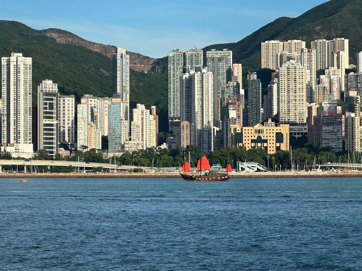 Our 45-minute cruise took us around the harbor, with beer, wine, cocktails, and beverages to toast our arrival in Hong Kong.