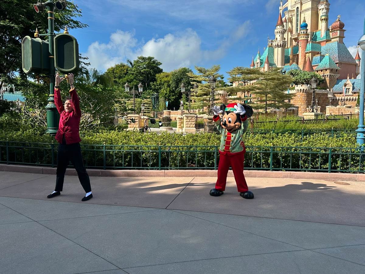 The 75 Guests on the trip took turns experiencing a 20-minute Tai Cheri Class with a Disney Master and a special guest. Mickey Mouse joined in the fun as we learned the basics of this traditional exercise. Hong Kong Disneyland Ambassador Lily was on hand to host the event, which was held in a shady spot off to the side of the Castle of Magical Dreams.