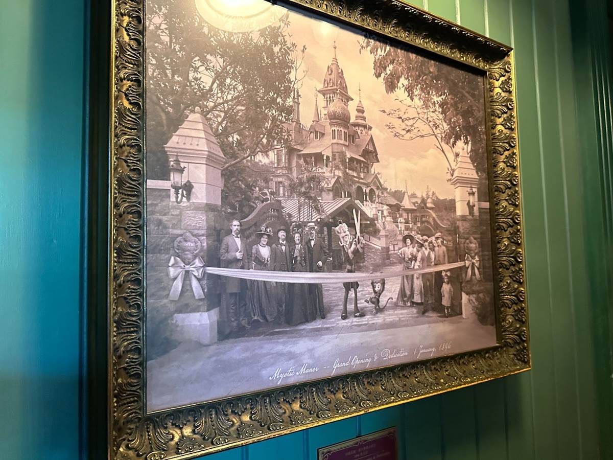 We were the first Guests of the day to ride Mystic Manor, with our Imagineer guides pointing out some special details. Hidden Mickeys are well-known, but this attraction has a hidden Walt and Roy! In a ribbon-cutting photo outside of the manor, the Disney Brothers can be seen on the right-hand side of the group.