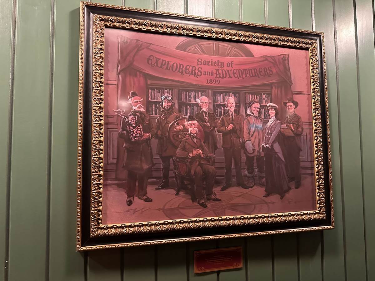 The manor’s founder, Lord Henry Mystic, is a member of the Society of Explorers and Adventurers (S.E.A.) and can be seen alongside other members, including Harrison Hightower from Tokyo DisneySea’s Tower of Terror, who bears a striking resemblance to Imagineer Joe Rohde. Another member of the group was designed to look like composer Danny Elfman, who wrote the music for Mystic Manor.