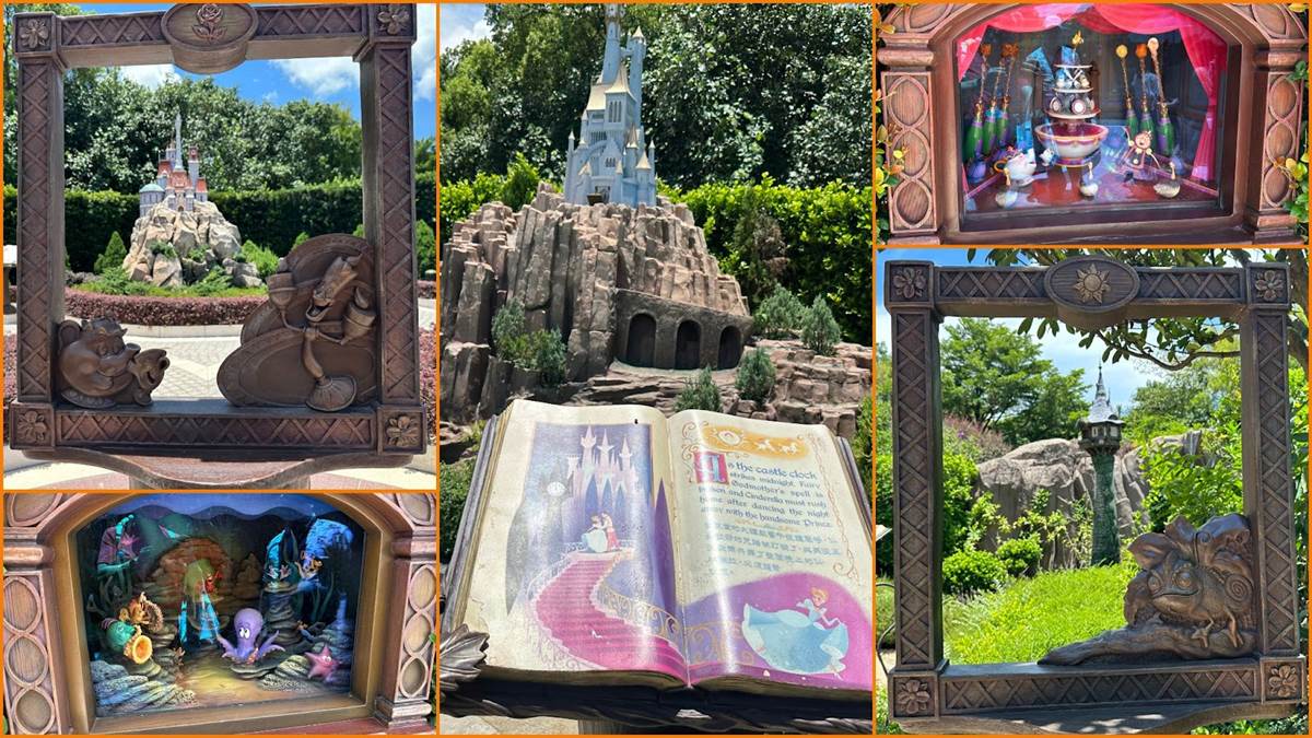 The park has several gardens, including one called Fairy Tale Forest, which is like an interactive walkthrough version of Storybook Land. Miniatures of castles for Snow White, Cinderella, Ariel, Belle, and Rapunzel are featured in the garden, with a wooden frame to capture the perfect photo. Each castle has an activated magic moment by playing with the storybook in front. For example, Beast’s Castle featured a rotating wall that revealed Belle and Beast dancing in the ballroom. There were also diorama boxes that came alive when a crank was spun.