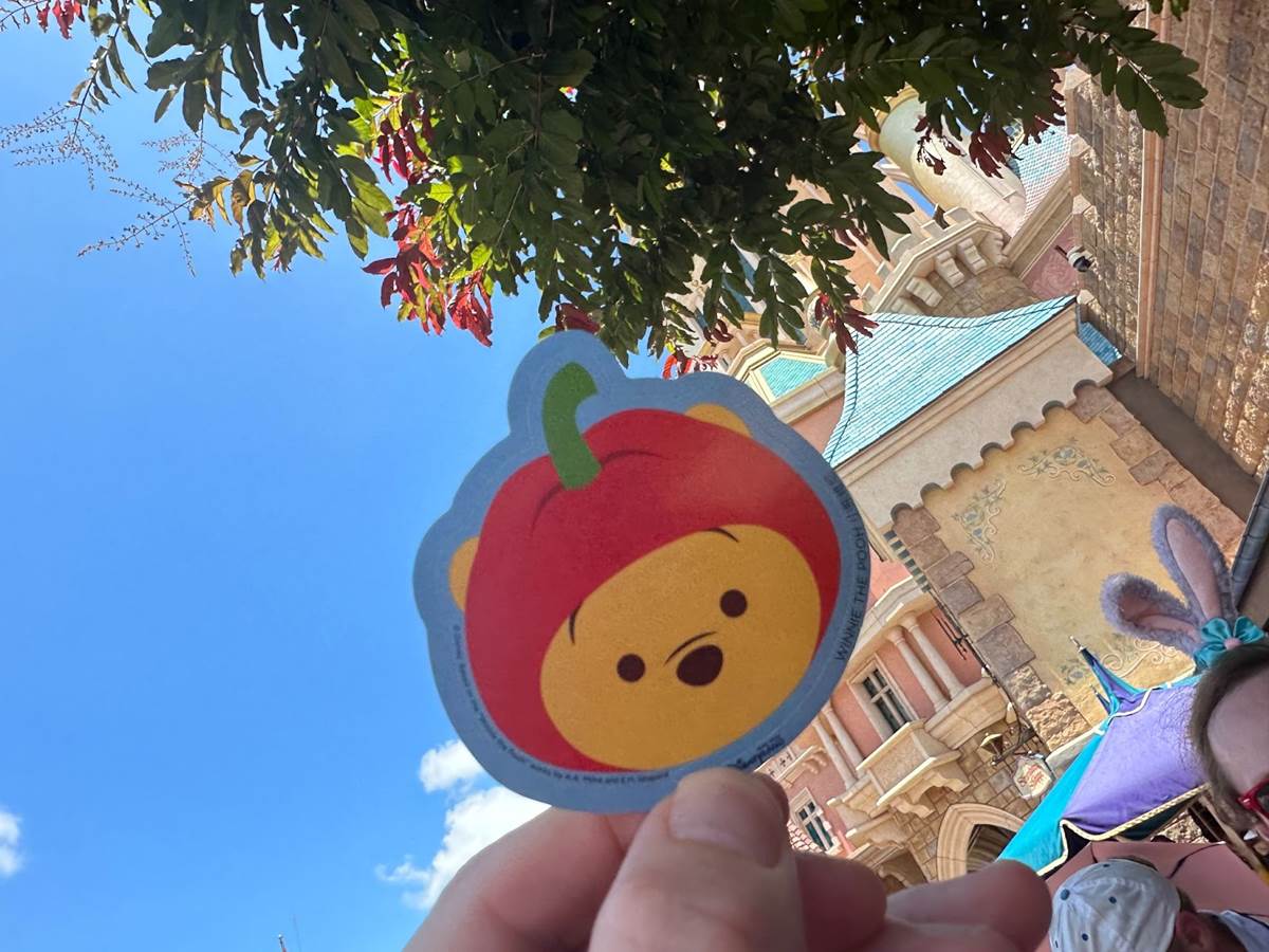 When the break was over, we returned to the Castle of Magical Dreams to meet our VIP Tour Guide, branded the "Momentous" Guided Park Tour. Our guide was Denis, who handed out stickers of Winnie the Pooh as an apple to wear (each group had a sticker of a character dressed as a fruit or vegetable). Denis ensured that we got to do everything we wanted, efficiently circling the park in a clockwise motion to reduce the amount of walking and selecting show times to give us breaks from the heat.