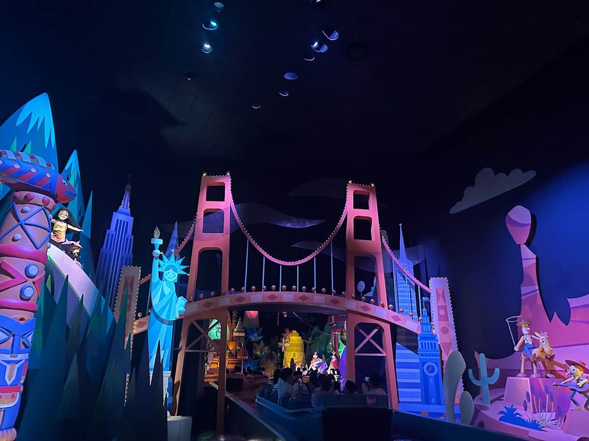 While it’s true that a lot of the attractions can be found elsewhere, for the most part, Hong Kong Disneyland strives to make its versions unique. Hyperspace Mountain felt more permanent than at other parks that have kept what started as a temporary overlay. Mickey and the Wonderous Book had a few different characters and songs to set it apart from the Shanghai Disneyland version. And this version of it’s a small world started the tradition of incorporating Disney characters into the attraction. It also has a more diverse section devoted to the United States, with the Golden Gate Bridge, Statue of Liberty, Woody and Jessie from Toy Story, and Pocahontas and Meeko from Pocahontas.