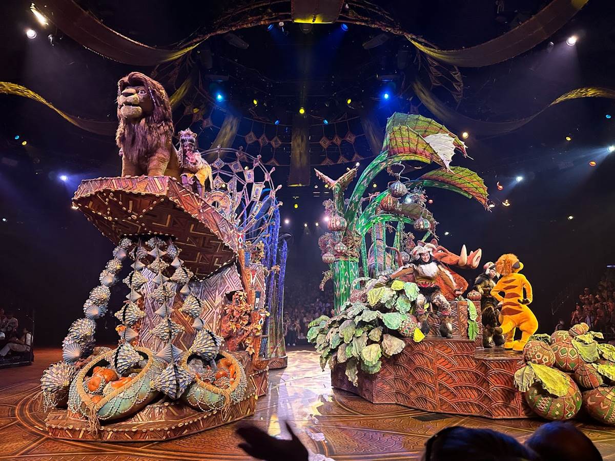 I was expecting Festival of the Lion King to be identical to the version at Disney’s Animal Kingdom, but it was refreshingly different. A singing host acts as the narrator and steps into the story to play Rafiki, with other actors recruited to play Simba, Nala, and Scar. Almost all of the songs have been rearranged. The floats get a lot more movement, entering the center of the theater for key story moments and joining together in a rotating carousel for the finale. There are dueling fire dancers, a more impressive “Can You Feel the Love Tonight" aerial act, and the stage is able to rise up, collapse, and spin. The only thing missing was tumble monkeys.