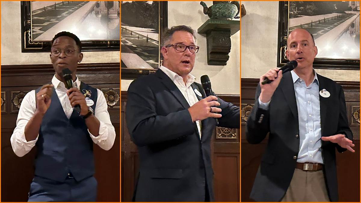 Hong Kong Disneyland Ambassador Tony Dick served as the master of ceremonies. We heard from the park’s Managing Director, Michael Moriarty, and Manager of Operations, Tim Sypko. They both shared stories that hit close to home for anyone who has ever been a Cast Member. Michael’s parents met by working at Disneyland and were relocated to help open Walt Disney World, which is where Michael had his first job and met his wife. He’s been at Hong Kong Disneyland since 2006 and expressed his love for how the park changed over the past 15 years. Tim began his Disney career almost 30 years ago at Walt Disney World, where he met his wife. In a full circle moment, she was a manager at Kilimanjaro Safari when Disney’s Animal Kingdom opened in 1998. She was there while pregnant with their daughter, who became a safari driver in 2019. Tim came to Hong Kong Disneyland shortly before the pandemic started and talked about how the park pivoted to cater directly to Hong Kong locals during that time, building up a local fanbase that celebrates their Disney fandom every time they visit through character-themed headbands and magnetic shoulder characters (primarily of the Duffy and Friends variety).