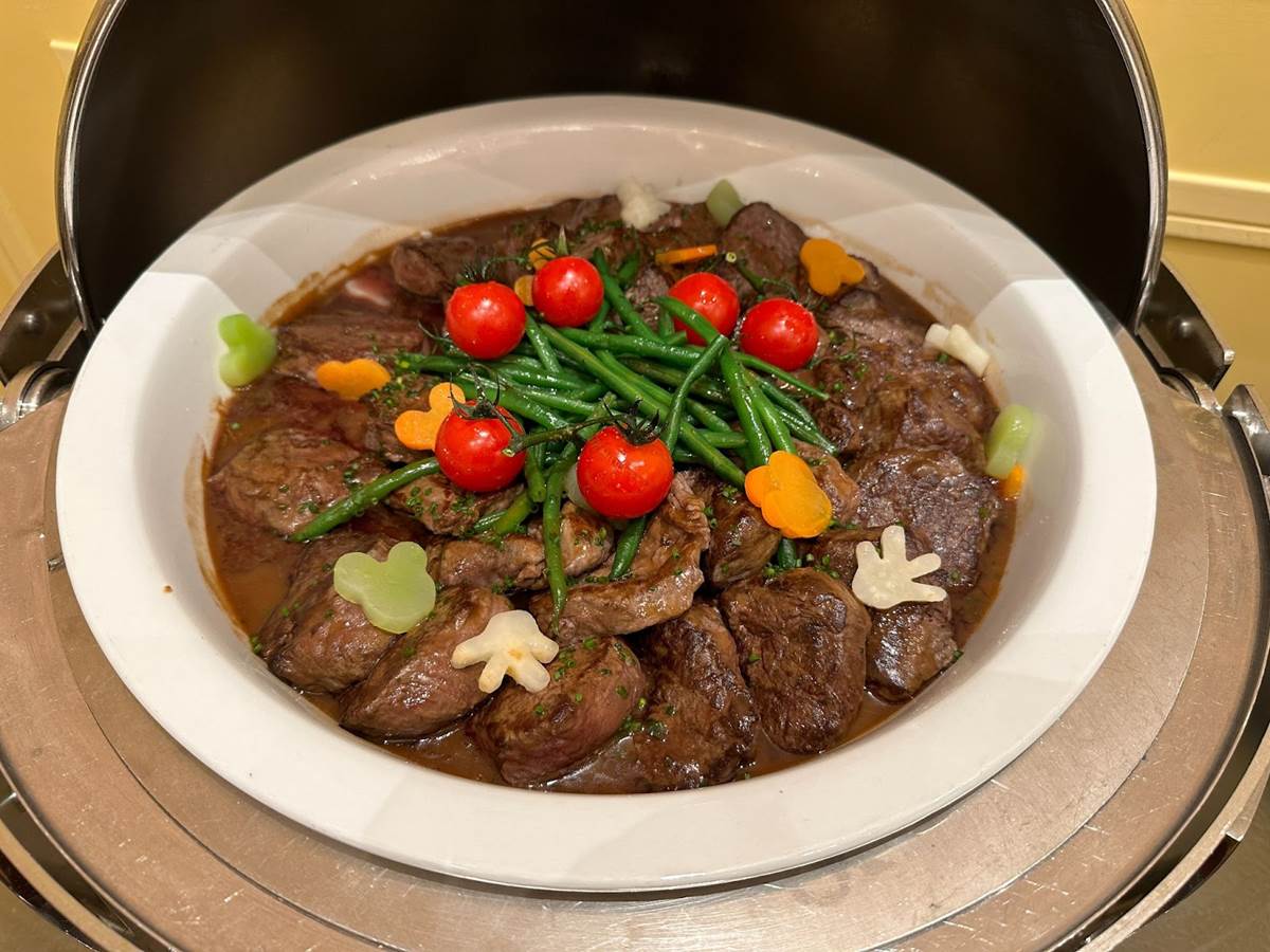 We also signed up for tomorrow’s optional tours. The menu of offerings had changed from what Adventures by Disney advertised due to high temperatures. Omitted items included a nature walk and visits to several other tombs, while a cooking class was added to the options. We were also asked to select from three dinner options for the following night, choosing between a traditional Indian restaurant, an international one, or staying in with room service. A buffet dinner was set up in the hotel’s ballroom, which featured a mix of Indian food and American comfort food for picky eaters.