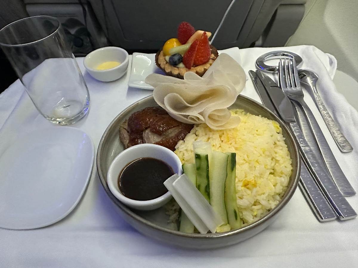 The jet’s chef prepared a wonderful lunch. I enjoyed roast duck with fried rice. The Walt Disney Archives Director Becky Cline gave a presentation titled “Lost on the Way to the Fair: Legends of the Enchanted Isle," which would’ve been a stage-show version of Walt Disney’s Enchanted Tiki Room at Disneyland sponsored by Coca-Cola. She showcased some concept artwork housed in the Walt Disney Imagineering Archives that was produced for the show. Two waterfalls would’ve framed the stage, with a moat between the audience and an island full of bird cages and totems. A volcano eruption during the show would’ve set the moat on fire. And at the end, the waterfalls would stop flowing, and drawbridges would extend out as an exit to the experience. The connection to the flight is that instead, Coca-Cola created its own walkthrough experience called “World of Refreshment," which took visitors around the world to sample international Coke products. The first two destinations were Hong Kong and India.