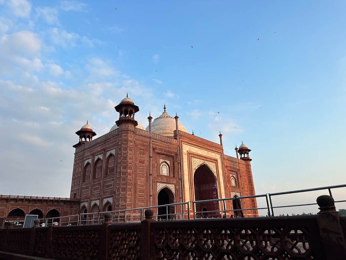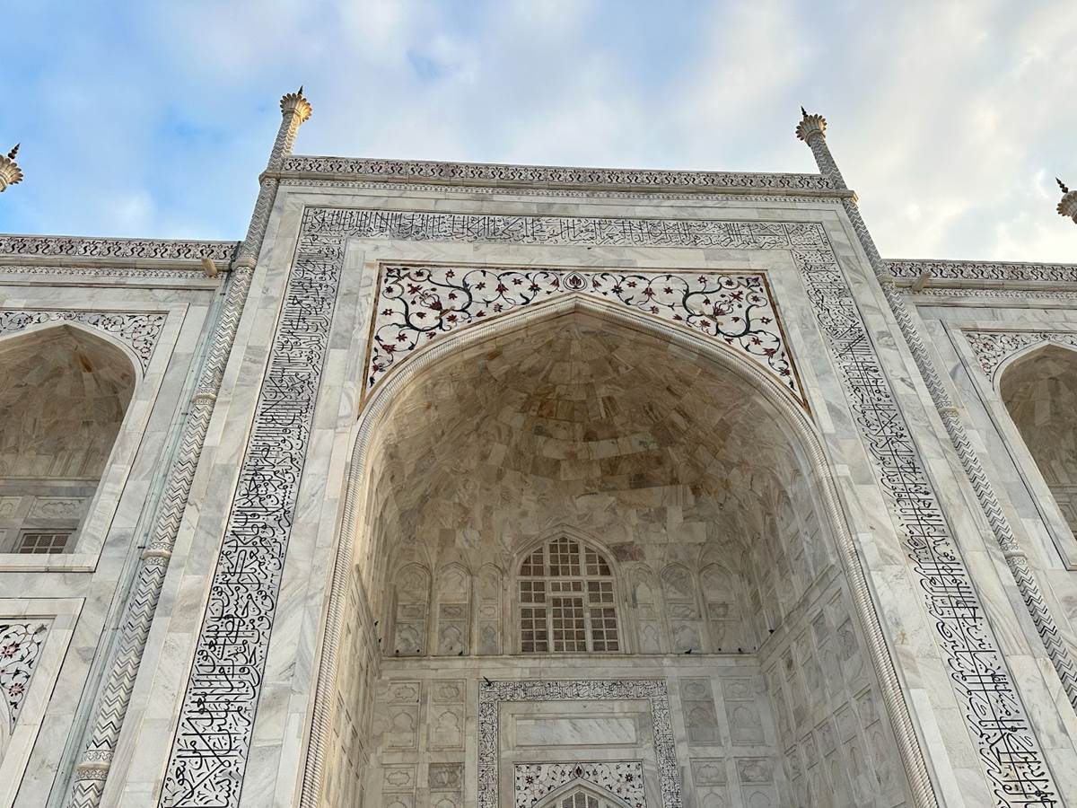 Sunil explained that Shah Johan initially wanted his wife’s tomb to be made of gold but was talked out of it due to the precious metal’s high risk of theft, as had been done on golden tombs in Egypt. Instead, he settled on white marble, which symbolized both purity and mourning. Commissioned in 1631, the Taj Mahal took 22 years to complete, with over 20,000 people contributing to its magnificence. Shah Johan was obsessed with symmetry and this hand-made marble shrine is precise in nearly every detail. This includes two structures on either side of the tomb, one of which is a mosque to the west, with a copy of it to the east that is called the “guest house," despite the fact that it is neither a house nor do people stay there.
