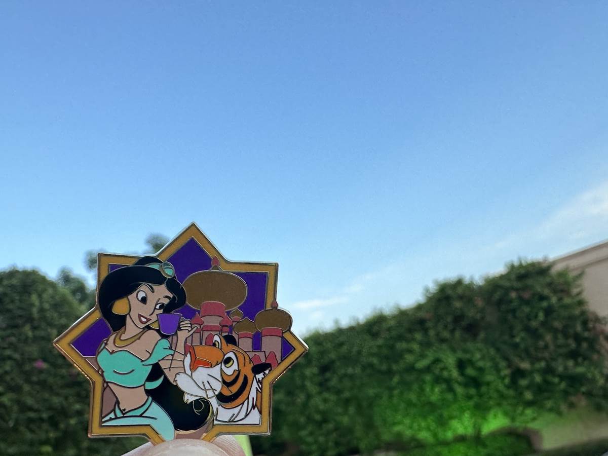 During the event, our Adventure Guides revealed the pin of the day. This one features Jasmine and Raja from Aladdin in front of the palace of Agrabah, which was inspired by Indo-Islamic architecture like the Taj Mahal.