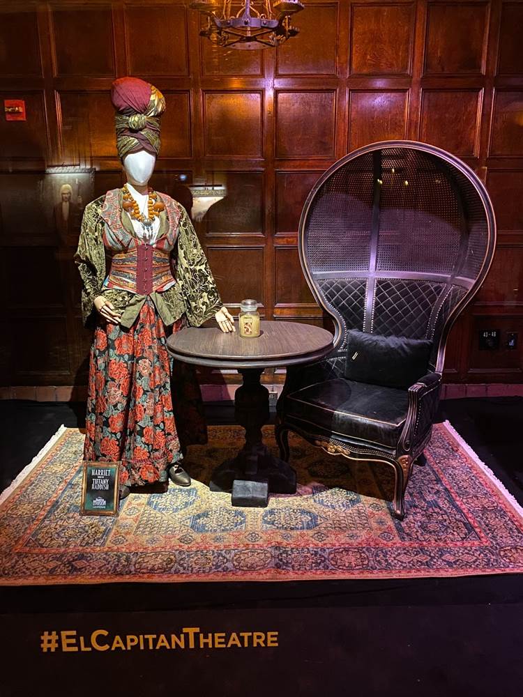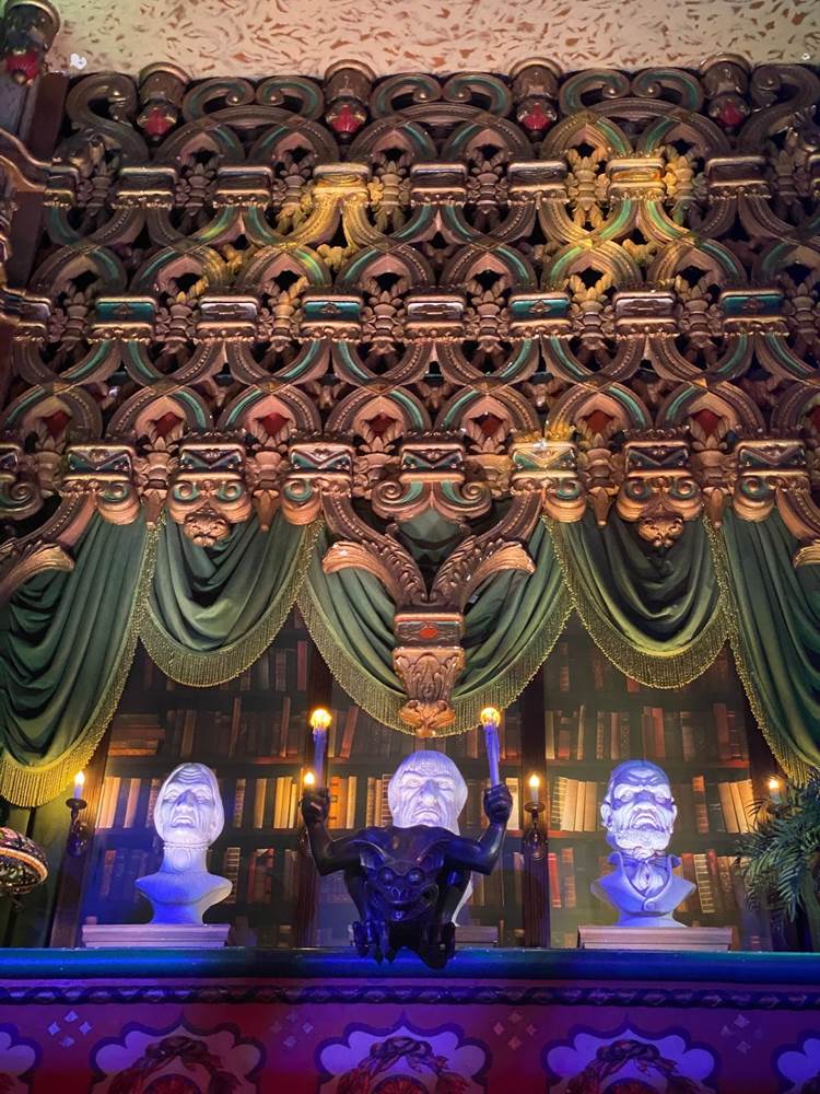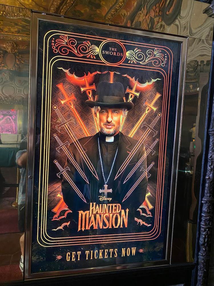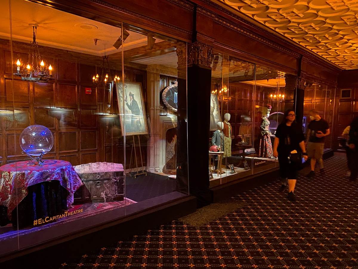 Tonight at Hollywood’s famous El Capitan Theatre, Disney’s new Haunted Mansion movie debuted with an opening night fan event. Laughing Place was invited to the El Capitan to check out the theater’s gorgeous display of props and costumes from the film, Doom Buggy photo ops replicating the iconic Disney Parks ride vehicle from The Haunted Mansion, and more decor inside the beloved movie house.