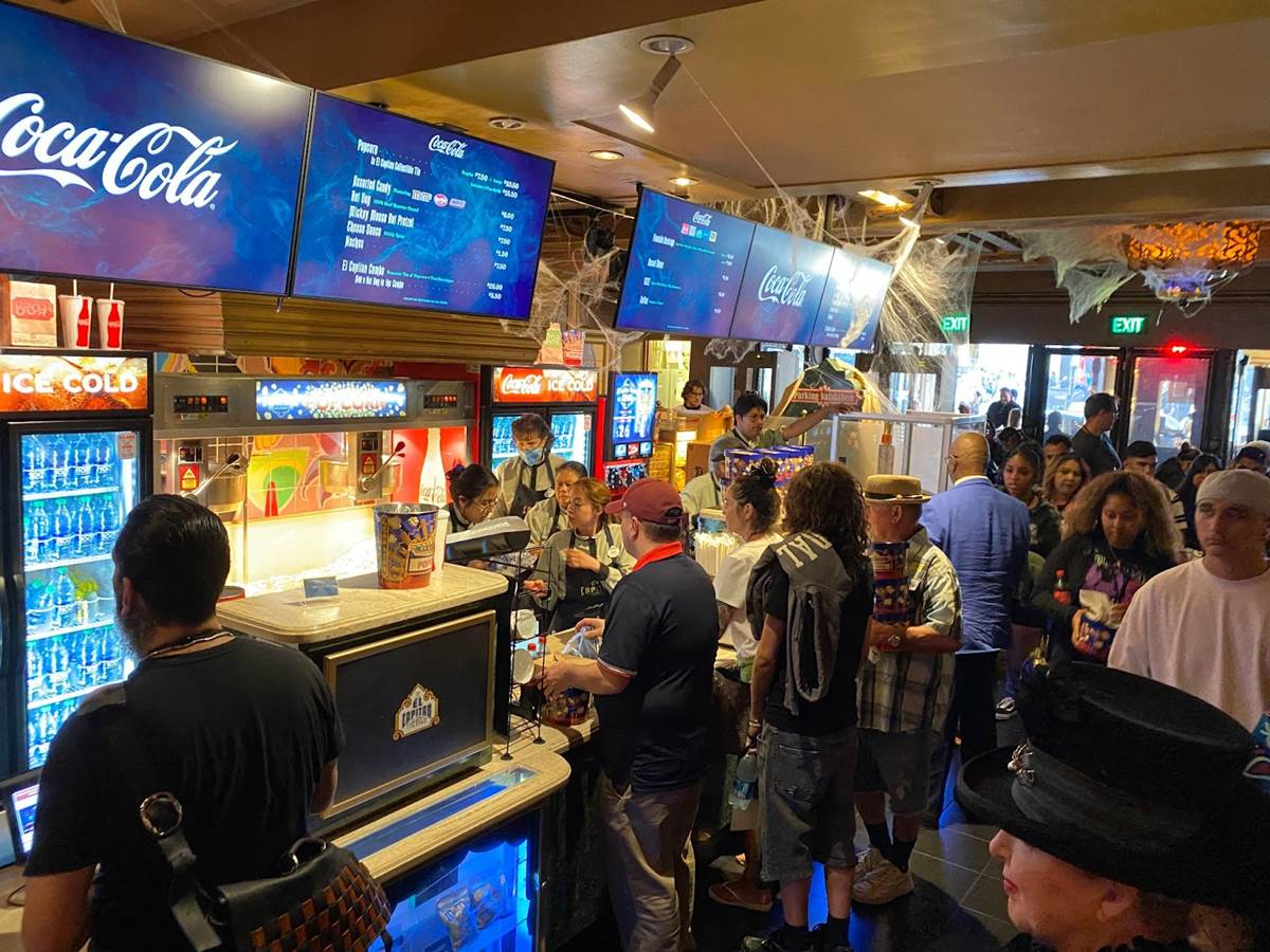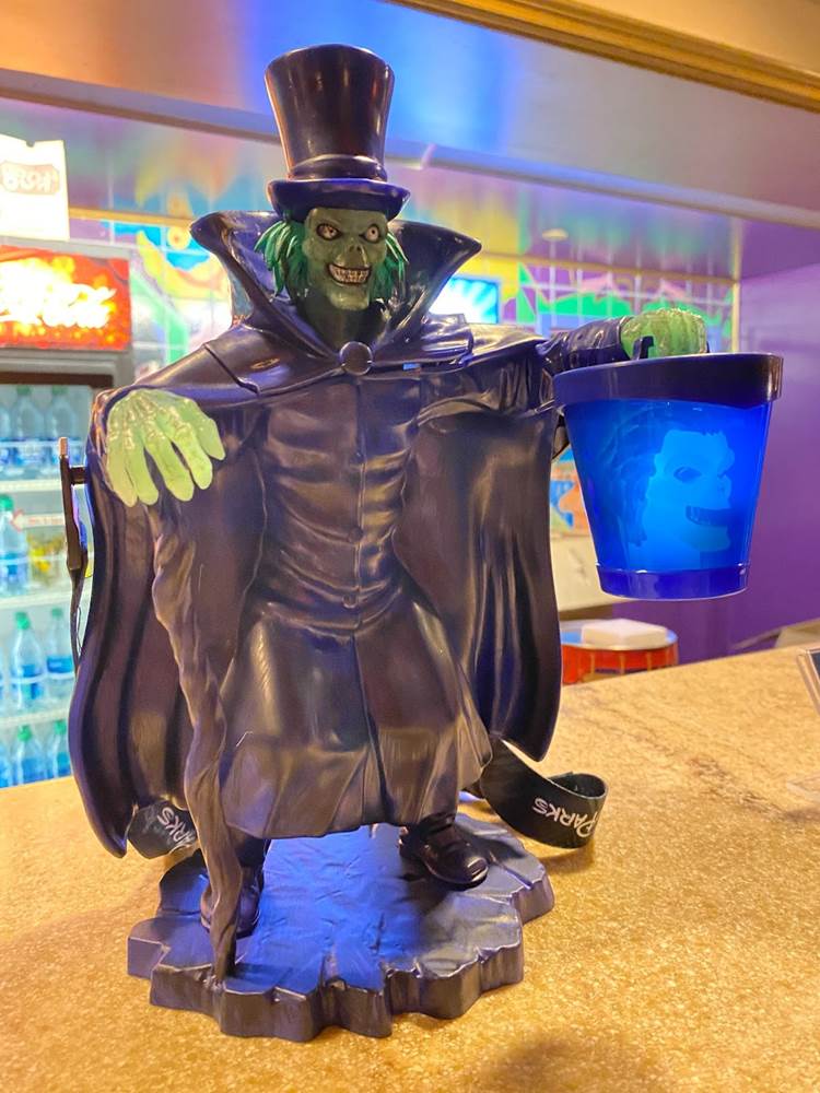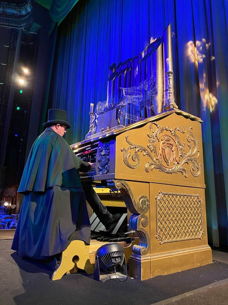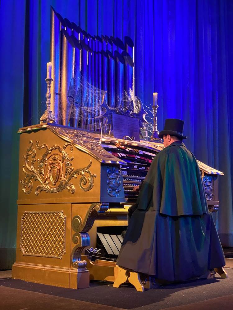 In the embedded video below, you can see how El Capitan Theatre’s fan-favorite pipe organist is also decked out for Haunted Mansion in a creepy cloak, as the decorations inside the auditorium and the theater’s lobby pay tribute to the classic attraction at Disneyland and Walt Disney World. There’s also a very cool Hatbox Ghost sipper that will not-so-coincidentally be available at Disney Parks beginning tomorrow to coincide with the movie’s release.