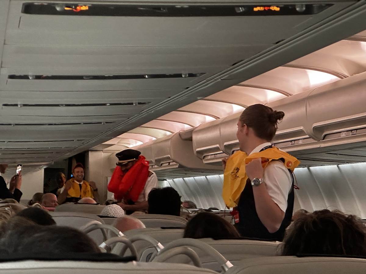 Following a buffet breakfast at Disney’s Hotel New York - The Art of Marvel, we boarded coaches to Paris’ Charles de Gaulle Airport and boarded our private jet, operated by Icelandair. One of the captains joined the safety demonstration, intentionally inflating his life preserver during the demo to the surprise of everyone. Becky Cline gave a presentation during this flight in celebration of Christmas in July called “Holiday Magic at Disney Parks," inspired by a book she co-authored on the same subject.