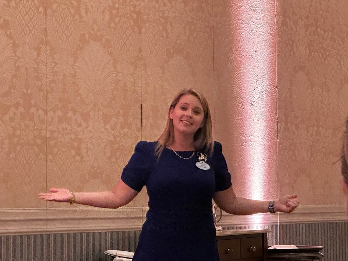 After some relaxation time, a buffet dinner of American comfort foods was set up in the Grand Floridian Ballroom of the convention center. Walt Disney World Resort Ambassador Ali Manion was present to welcome us to the final stop on our world tour.