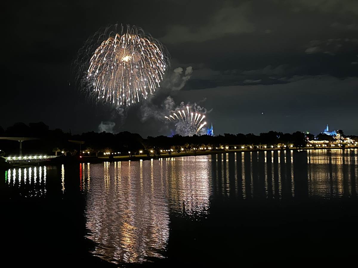 A cocktail reception was set up for viewing of Happily Ever After from across the Seven Seas Lagoon. But after a long day of travel, we opted instead to enjoy the show from the comfort of our balcony.