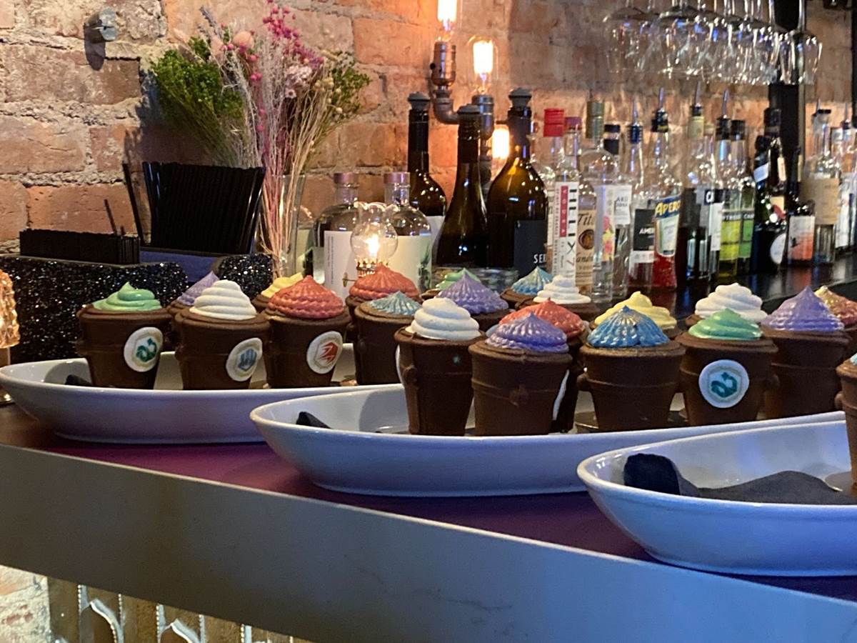 As you might expect, the entire venue was decked out in Lorcana art for the event. This included displays featuring the game itself, tables topped with card art, and other fun details. Themed desserts were also on the menu (alongside appetizers that made their way around the room), including chocolate ink pots filled with colorful cremes. Naturally, cocktails and mocktails inspired by the game were available as well.