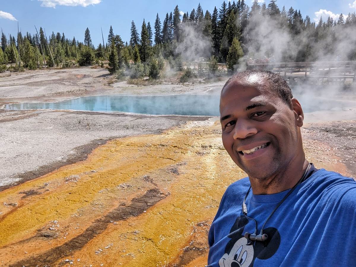 Anyway, after getting our pictures at the Yellowstone sign, we rode to the West Thumb Geyser Basin and got our first up close look at one of the national park’s famous features. We walked the boardwalk on our own though our Adventure Guides were there as well to point things out and answer questions. It was all so amazingly unique and beautiful, like nothing I’ve ever seen before. I was mesmerized … little did I know it was just a taste of what was to come.