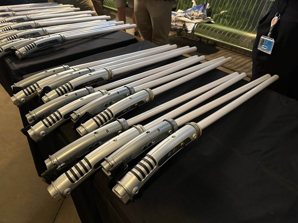 As Guests exited the theater after the screening, they were given a pair of Ahsoka Tano playline lightsabers.