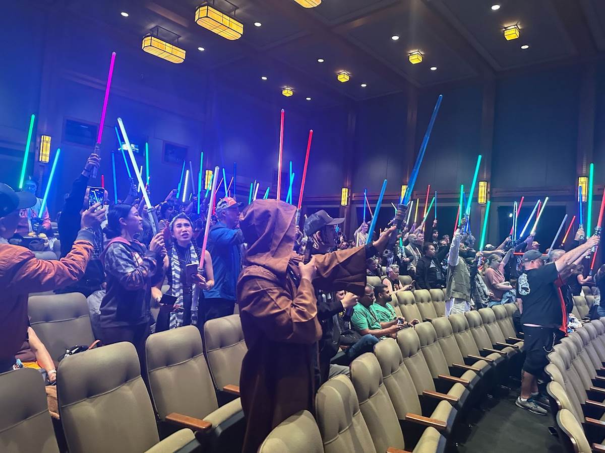 Inside the theater, Guests were entertained by a DJ who also went through a game of trivia. Guests also received a raffle ticket, with 80 lucky attendees walking away with an Ahsoka Tano lightsaber.