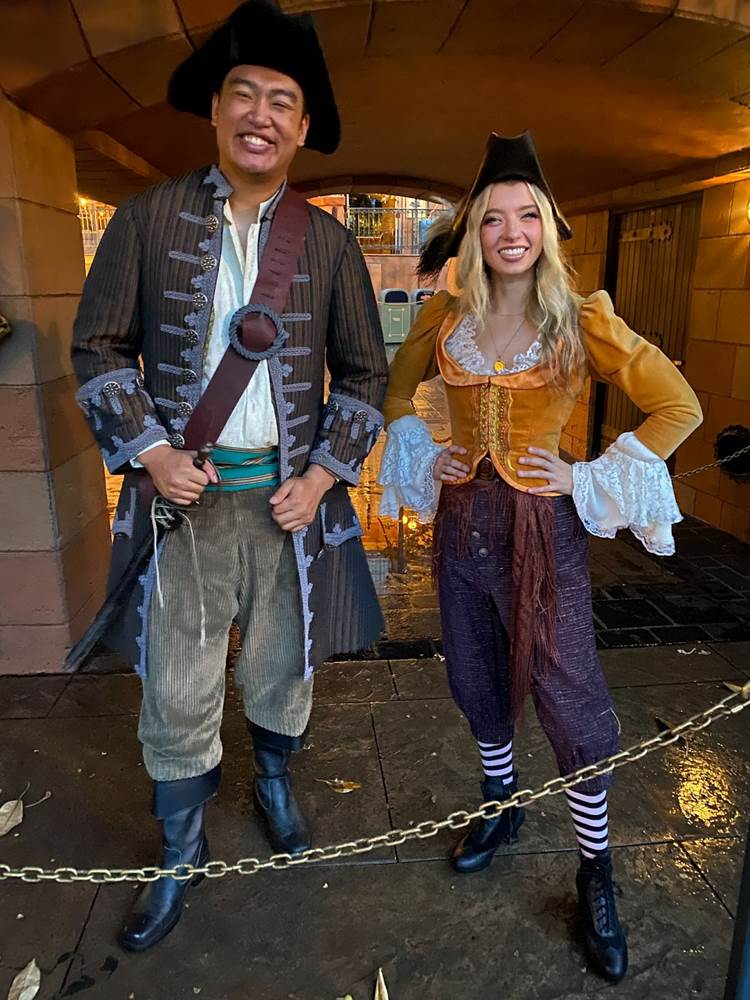 After the opening ceremony, we began to walk along the 5K route, which started in Disneyland’s Hub and made its way through Adventureland, New Orleans Square, Critter County, and even Star Wars: Galaxy’s Edge. Along the way we encountered characters like Indiana Jones and some actual Pirates of the Caribbean (including our favorite Pirate Redd).