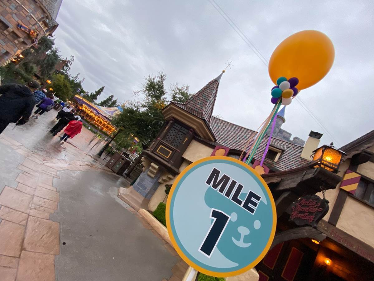 Next we traveled through Frontierland, Fantasyland, and Tomorrowland, where we were greeted by characters from The Princess and the Frog, Mary Poppins, Alice in Wonderland, and Star Wars– namely Darth Vader and a couple of menacing Imperial stormtroopers. During this leg of the journey we also passed the first mile marker.