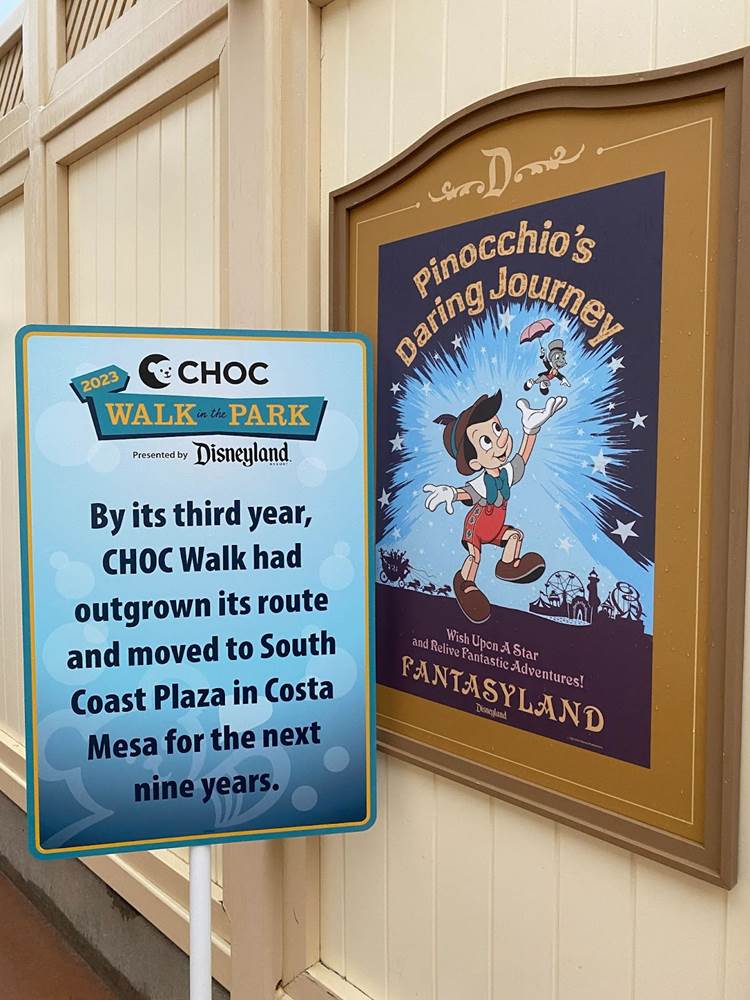 In Tomorrowland we started to notice informational signs about the history of CHOC Walk, and they continued to pop up through the remainder of our morning.
