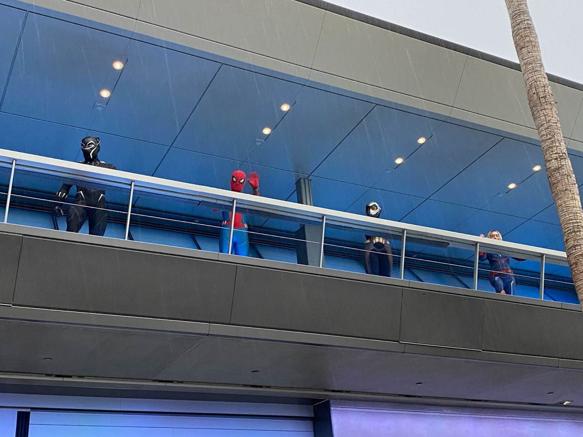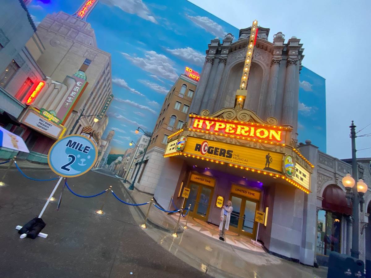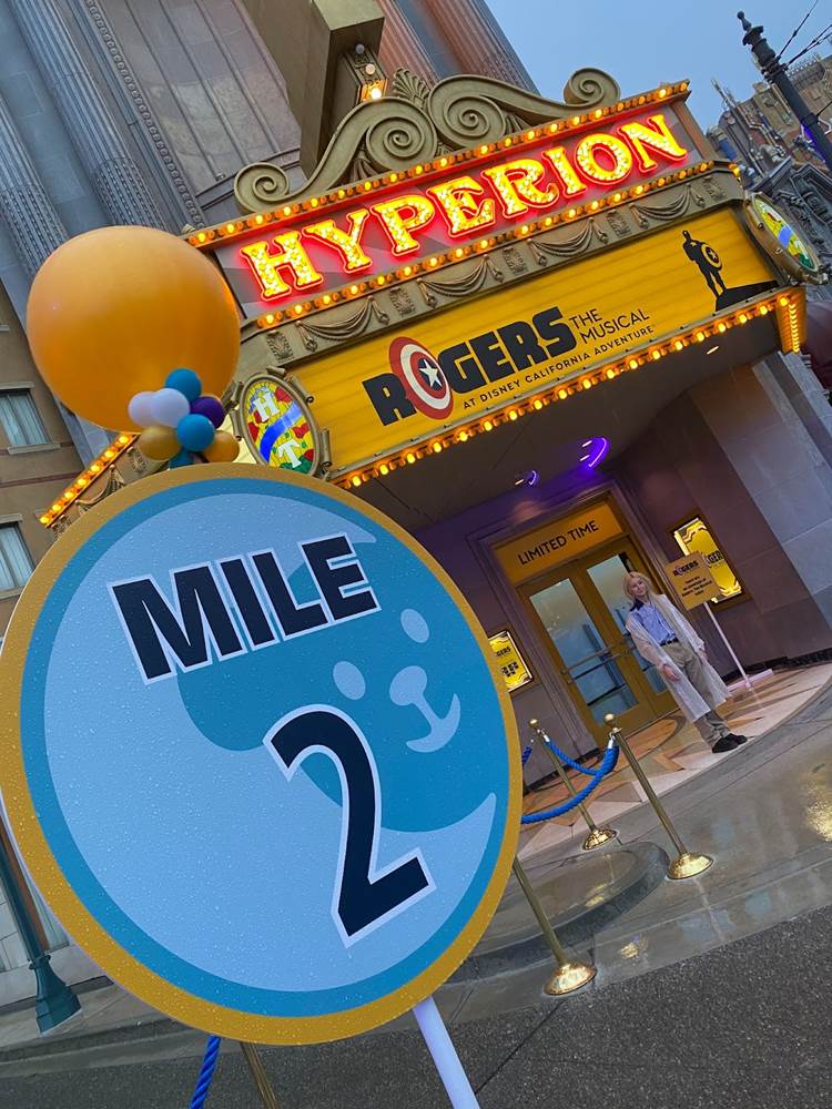 As we left Disneyland itself, Pluto waved goodbye and we traveled across the Disneyland Resort esplanade to Disney California Adventure. There we were greeted by the citizens of Buena Vista Street, and made our way past the second mile marker into Avengers Campus– incorporated into CHOC Walk for the very first time– where Marvel superheroes waved to us from the balcony of Avengers HQ.