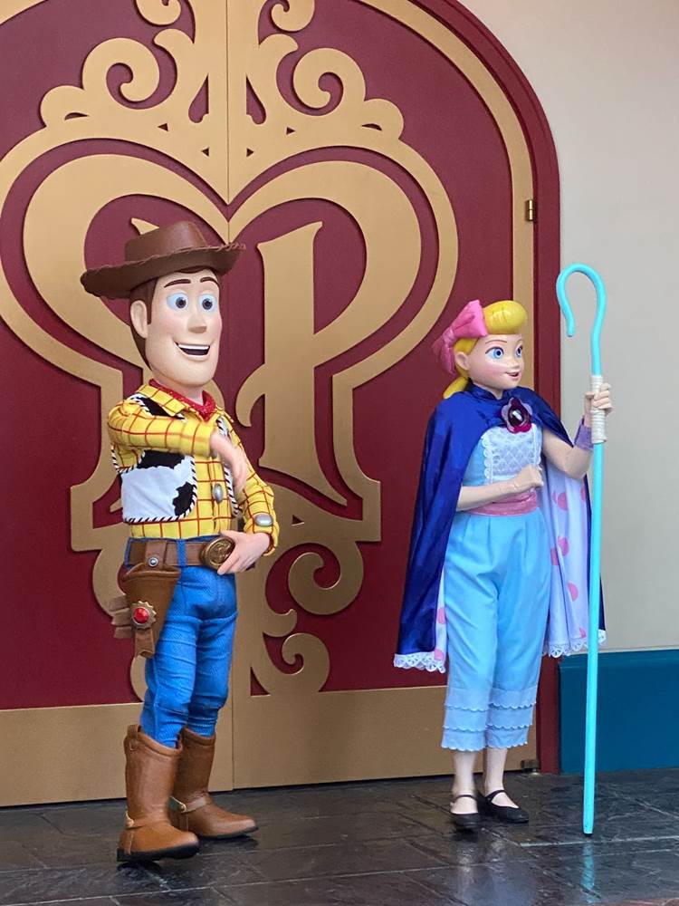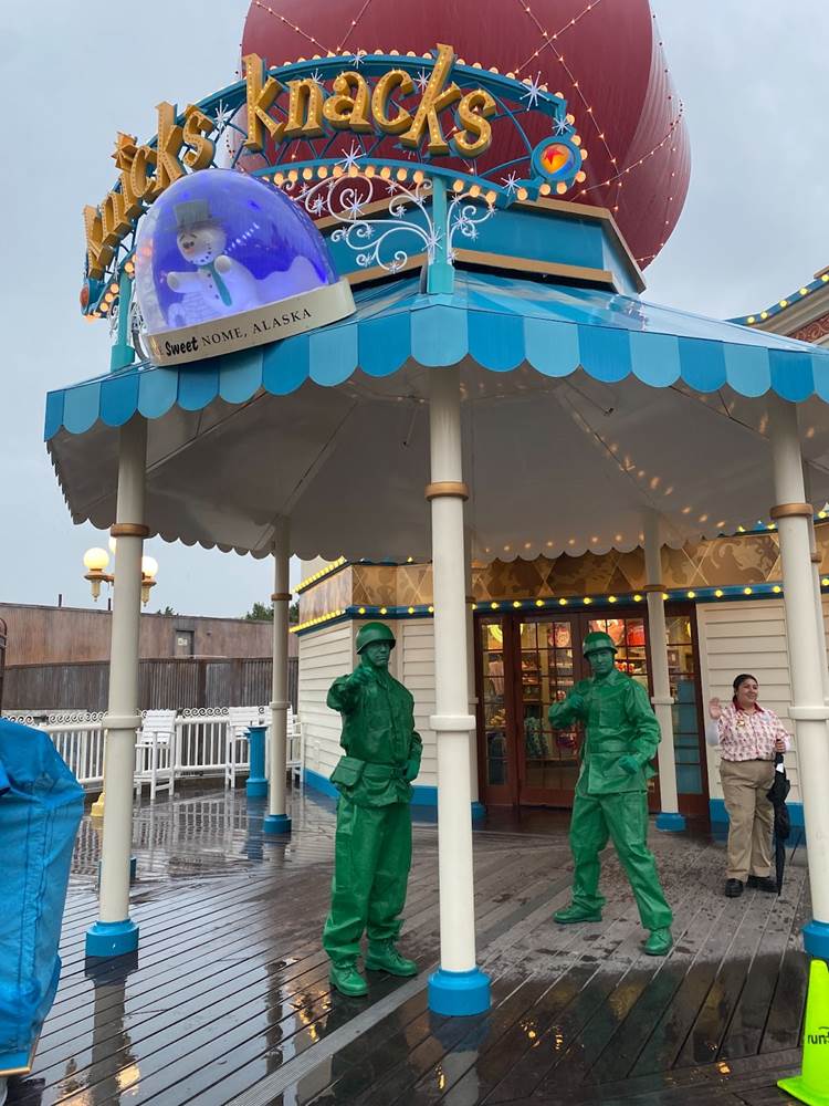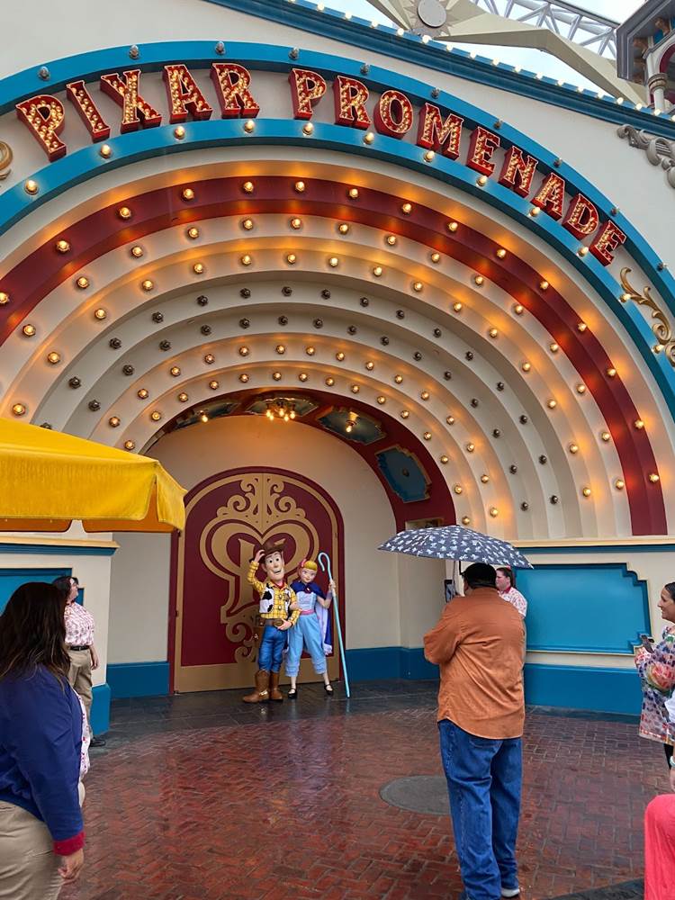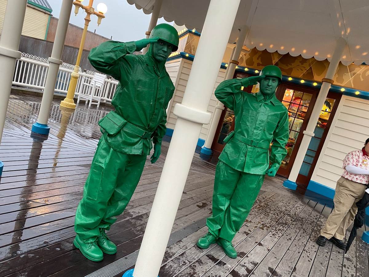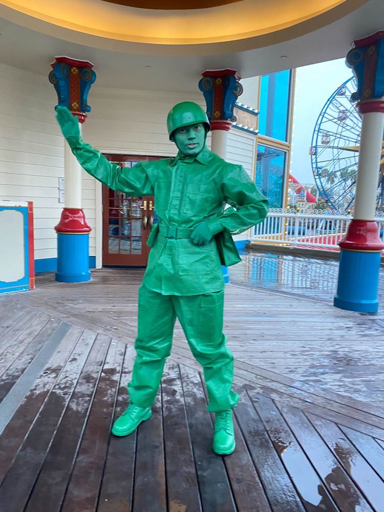 As we continued on through the final third of our 5K walk, we traversed the pathways of Cars Land, Pacific Wharf (soon to be rebranded as San Fransokyo Square), and over to Pixar Pier, where we saw a handful of Toy Story characters like the Green Army Men, Woody, and Bo Peep.