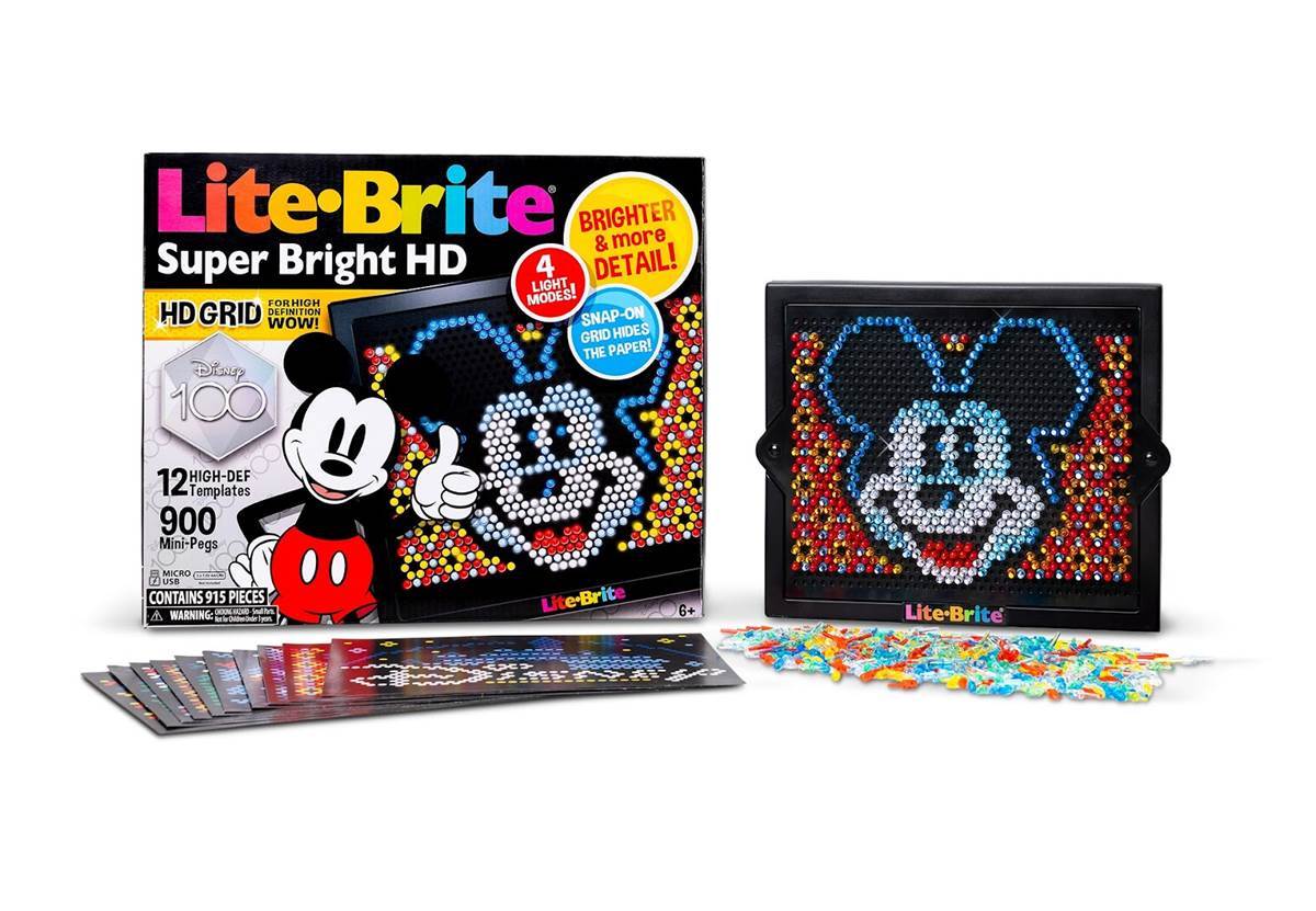 Create dazzling pieces of light-up art with the new Lite-Brite Super Bright HD Disney 100 Edition from Basic Fun! This nostalgic toy comes with 12 designs that highlight a century of Disney magic. And unlike the Lite-Brite of your youth, the newest model uses LED lights (powered by your choice of battery or Micro-USB) with 4 different modes.
