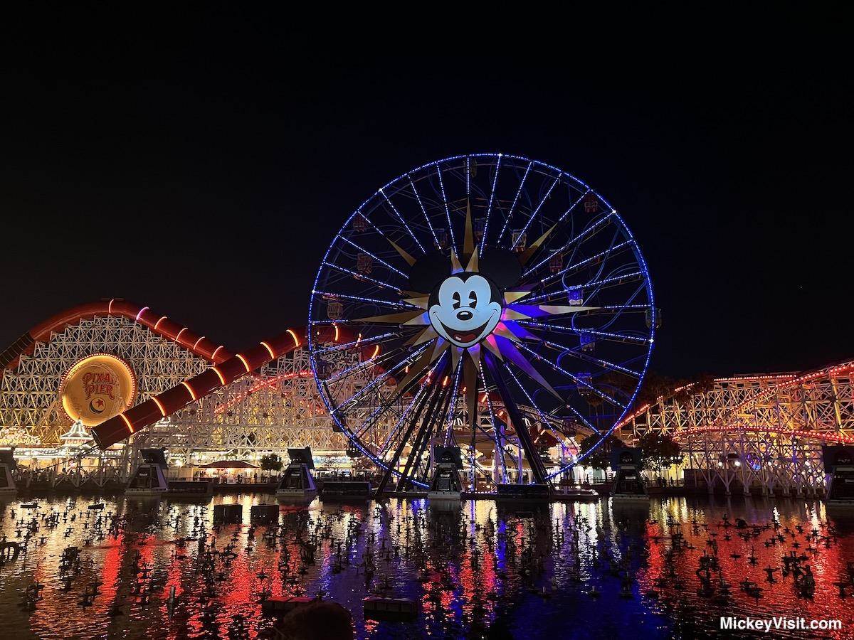 1) Pixar Pal-A-Round. If you’re comfortable with spending some time high up over the parks at a slower pace, this Ferris wheel in Pixar Pier provides a great view of Disney California Adventure and glimpses of Disneyland with gorgeous nighttime lighting.