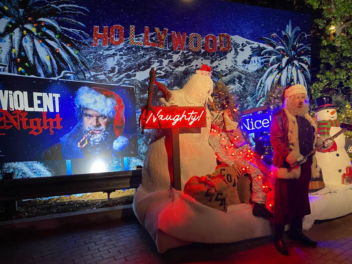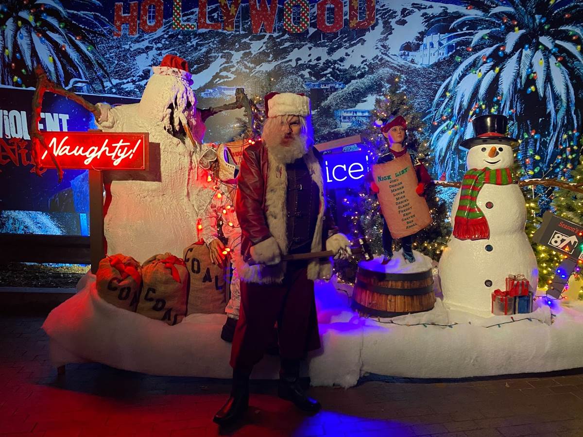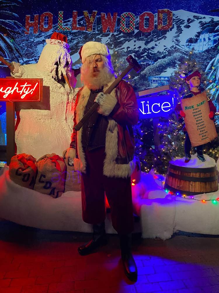 And at the unloading platform for the Terror Tram, you might encounter old Saint Nick himself from the movie Violent Night.