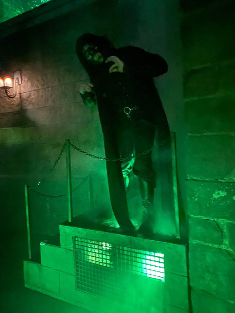A couple of the haunted houses require guests to walk through the Wizarding World of Harry Potter area to access them, and Hogsmeade Village has once again been overrun by Death Eaters. I was also impressed by the amount of projection effects used around the park this year.