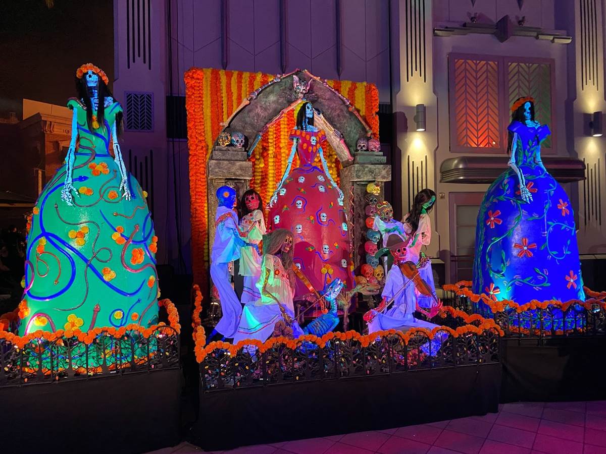 There are more Dia de los Muertos decorations in Universal Plaza.