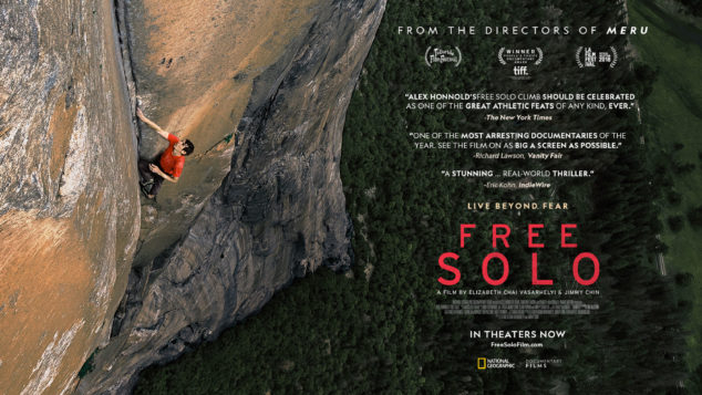 “From award-winning filmmaker E. Chai Vasarhelyi and world-renowned filmmaker, cinematographer and mountaineer Jimmy Chin (MERU), Free Solo is a breathtaking portrait of the free soloist climber Alex Honnold, as he prepares for an unprecedented feat: climbing the face of the world’s most famous rock … the 3,200-foot El Capitan in Yosemite National Park … without a rope.