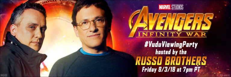- On Friday, August 3rd, at 7 pm PDT (10 pm EDT) fans around the country can join the epic Avengers: Infinity War viewing party hosted by Vudu and the film's directors, the Russo brothers.