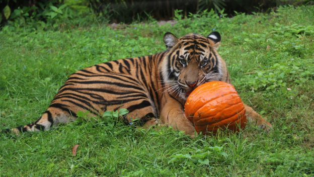 Given the wide variety of animals at Disney's Animal Kingdom, the interactions with the pumpkins vary. Take a look at some of the animals as they encounter their pumpkins in the gallery below.