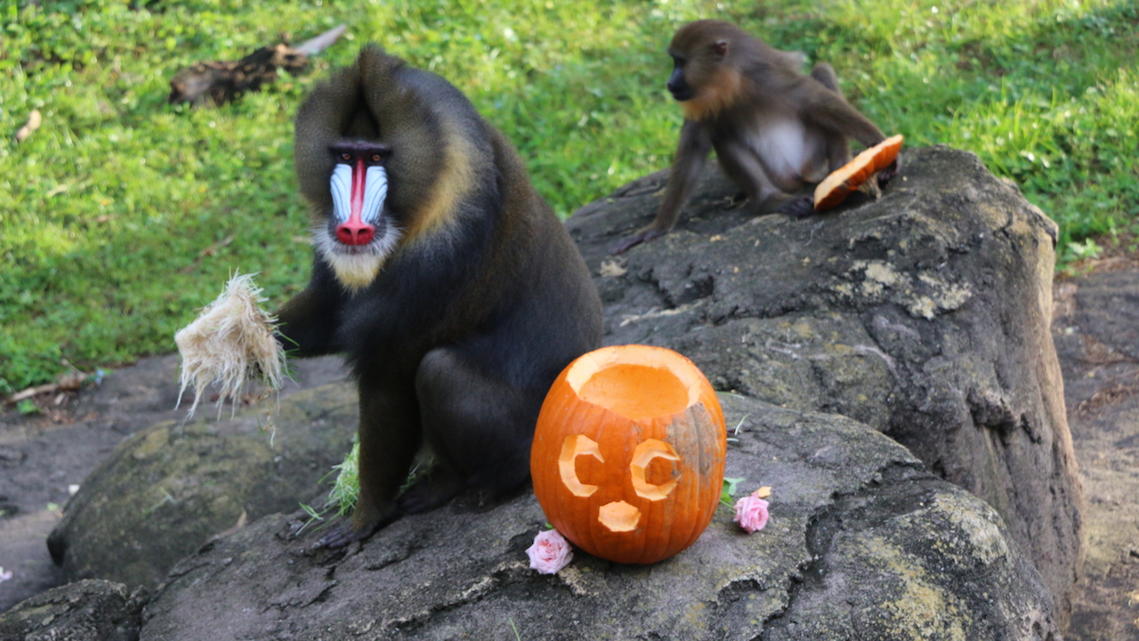 As seen in the video above, the animal care team at Disney's Animal Kingdom decorated the pumpkins and came up with creative ways to encourage the animals to play and interact with them.