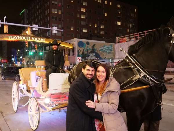 - Sure enough, when Ashley saw the horse and carriage, she asked their friends to take a photo of her and Kevin.