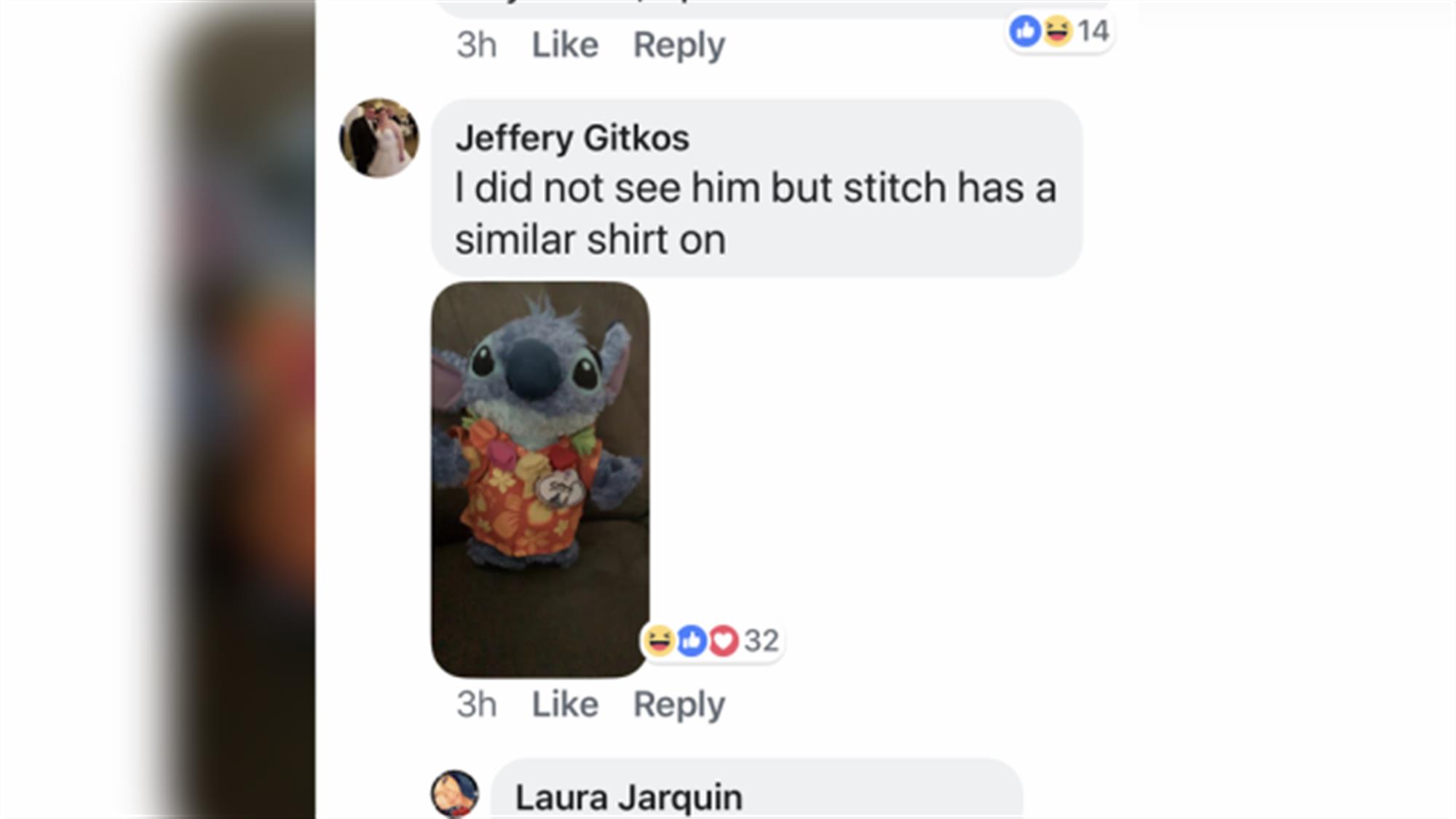 - Jefferey Gitkos said: “I did not see him but stitch has a similar shirt on” and attached a photo: