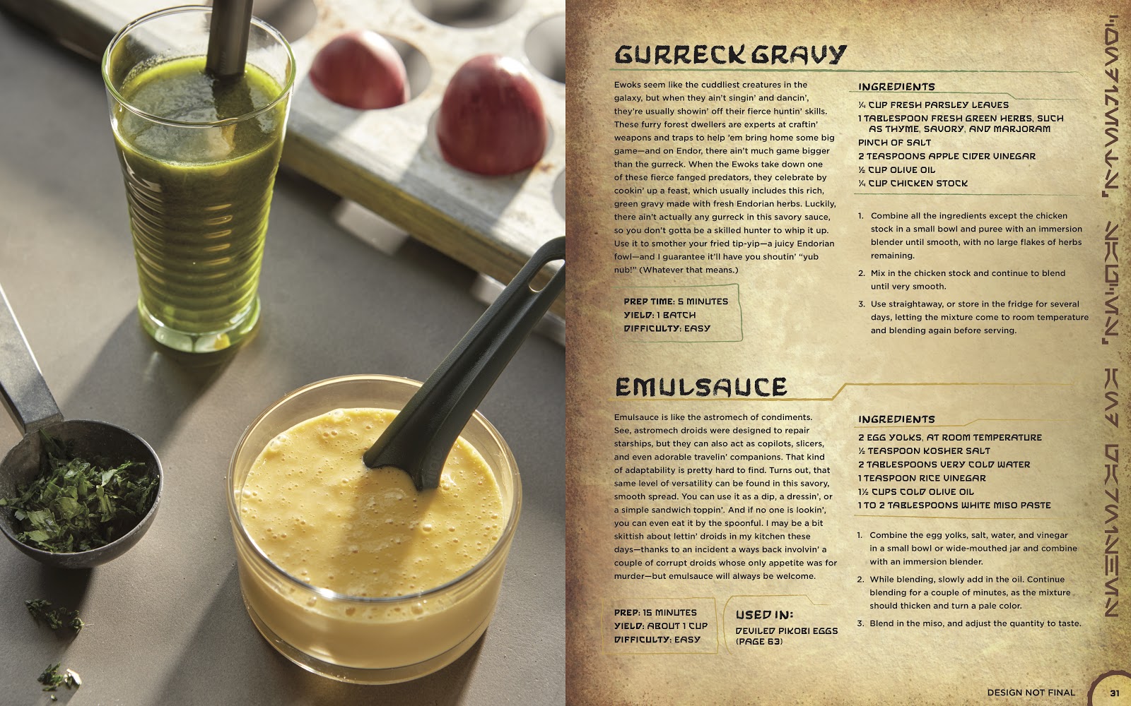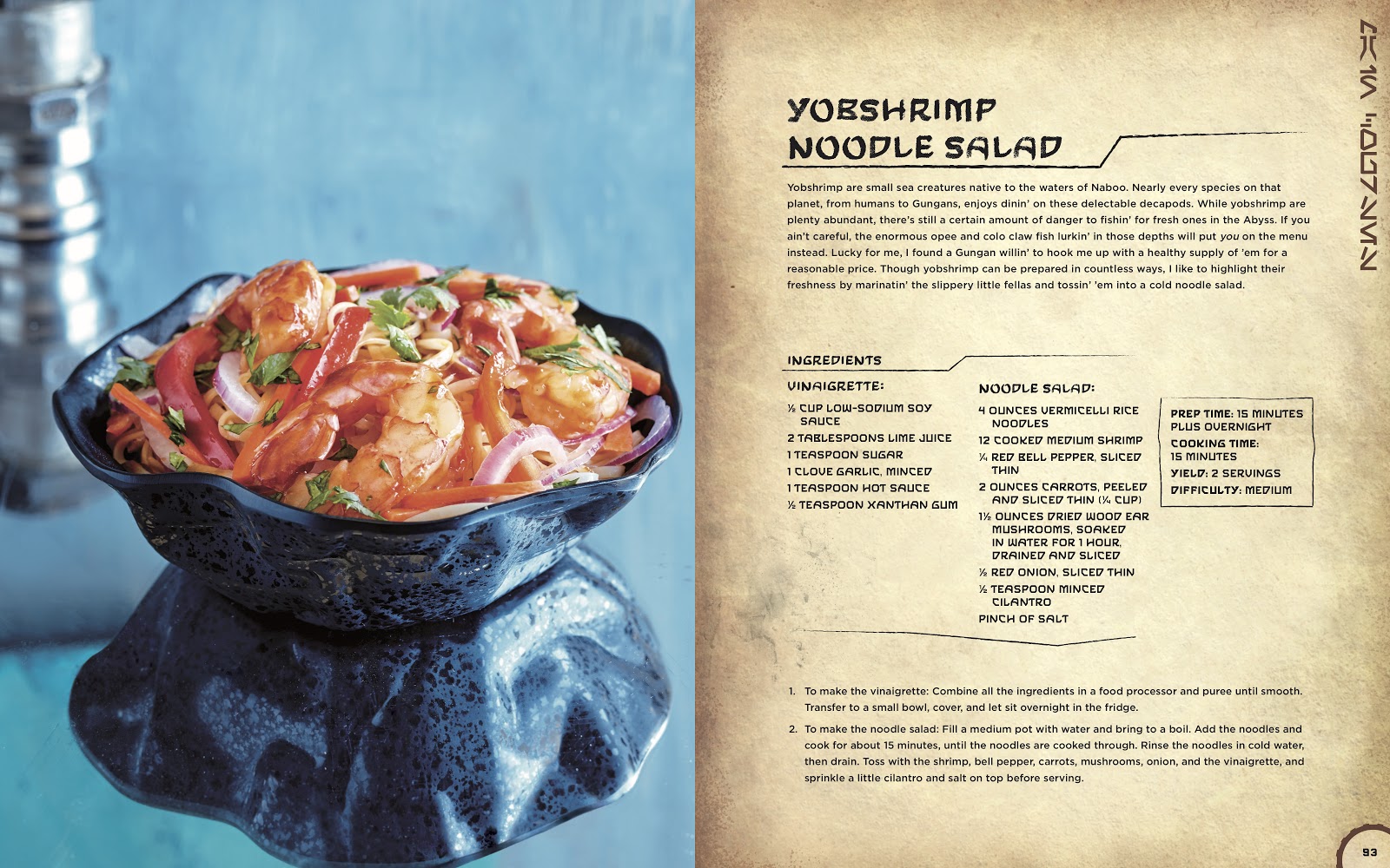 - Today, the book’s publisher, Insight Editions, gave fans a sneak peek at the cookbook sharing recipes for Yobshrimp Noodle Salad and Fried Endorian Tip-Yip.