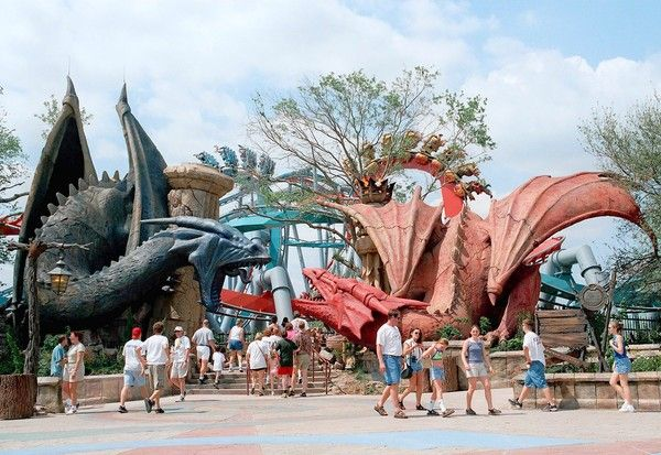 Dueling Dragons opened along with the park and was the clear headliner of the area that also included Poseidon’s Fury (an underrated and fantastic show) and The Eighth Voyage of Sindbad (a terrible show). Dueling Dragons didn’t quite live up to the expectations of Dragon Tower as it eschewed the dark ride portion of the ride, instead opting for a highly-detailed queue that drew rave reviews.