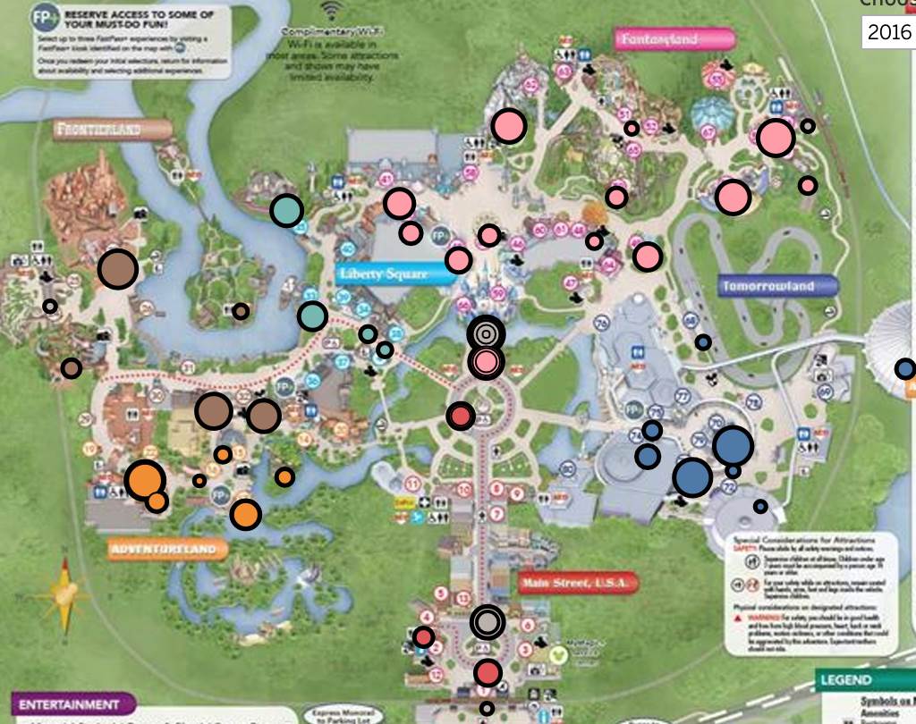 In the past few articles about the best attraction lineups at other Walt Disney World parks, there were some distinct transitions like Hollywood Studios switching from learn the movies to live the movies and Epcot switching from edutainment to IP. However, Magic Kingdom never really went through that same type of transition because so many of its early attractions have stood the test of time and are still around today, twenty-one to be exact. Because of that, it was a bit tougher to decide which year was the best with so many being so similar. But parcel it down I did, with 2016 being my first honorable mention because a year with New Fantasyland had to be included.