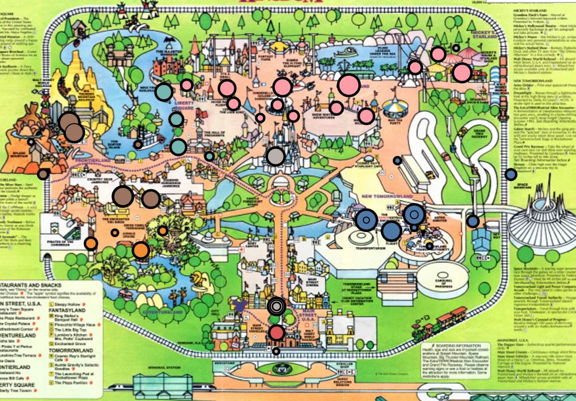 Following that same logic, there are a few classics that debuted a little after Opening Day, but quickly caught a foothold and are still around today. Pirates of the Caribbean, Liberty Square Riverboat, Space Mountain, Carousel of Progress, the PeopleMover, and Big Thunder Mountain Railroad all fit that bill, and by choosing 1980, we were able to include them all in each and every attraction lineup.