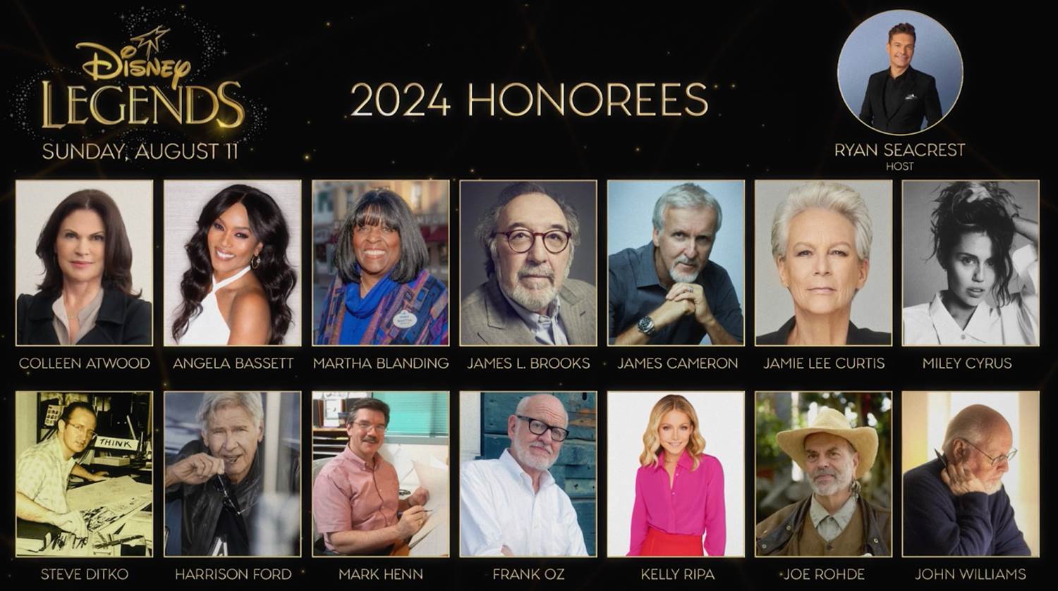 This year’s honorees include Colleen Atwood, Angela Bassett, Martha Blanding, James L. Brooks, James Cameron, Jamie Lee Curtis, Miley Cyrus, Steve Ditko, Harrison Ford, Mark Henn, Frank Oz, Kelly Ripa, Joe Rohde, and John Williams. Ryan Seacrest, the host of American Top 40, as well as American Idol and Dick Clark’s New Year’s Rockin’ Eve on ABC, will host the 2024 Disney Legends Awards Ceremony that will be filled with heartwarming tributes to each of the honorees, along with special guests, performances, and a legendary production like no other.