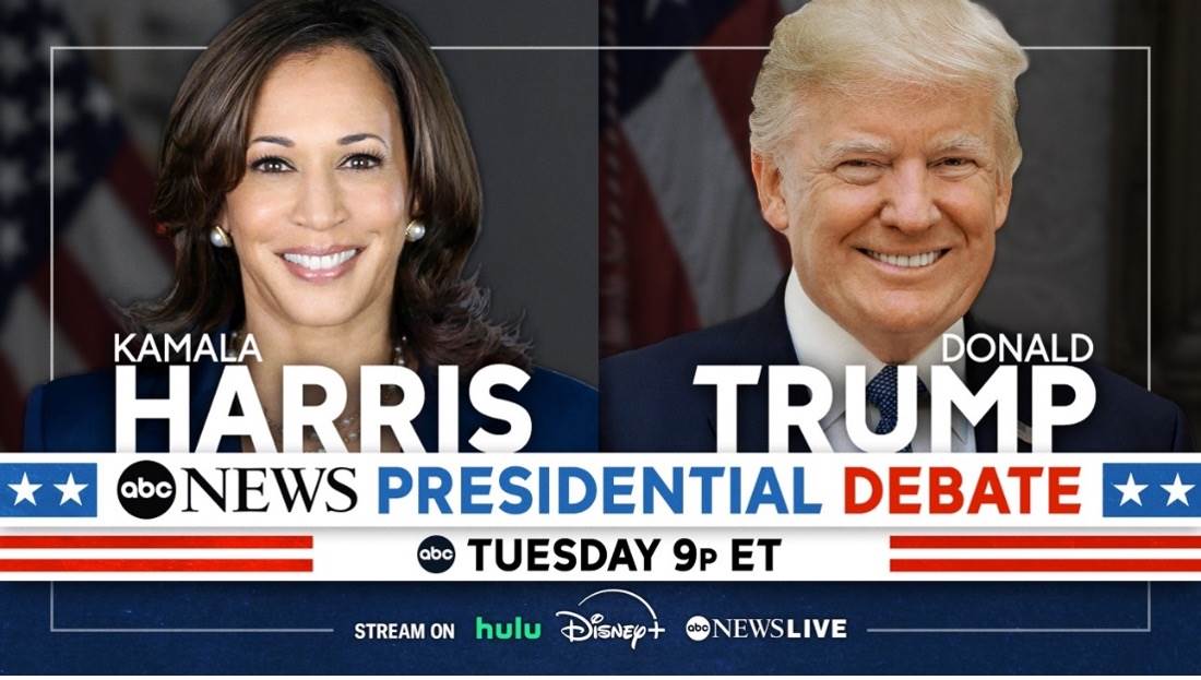 - Kamala Harris and Donald Trump – ABC News Presidential Debate will air Tuesday, September 10th at 9pm ET on ABC, ABC News Live, Disney+, and Hulu.