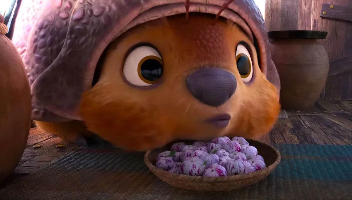 Tuk Tuk is another character without words. But Tudyk still manages to inject plenty of personality into that giant canine pug/pill bug/armadillo body.