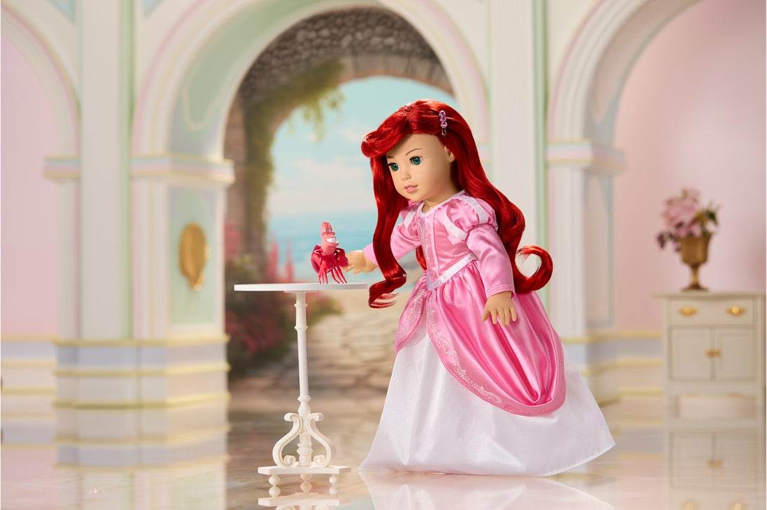 - American Girl Disney Princess Ariel Doll has aqua-colored eyes and red wavy hair with sideswept bangs and comes dressed in a classic mermaid-style dress.