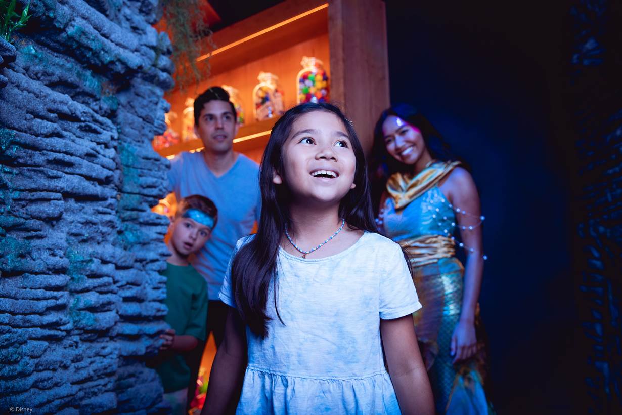 - The one hour attraction contains live music, puppetry, and magic as guests float their way through Triton’s Throne Room, discover Ariel’s treasures, and climb and slide through Ursula’s Lair. Guests will also be treated to a mermaid comedy show.