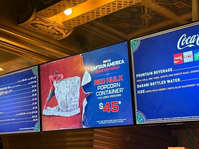 Collectible food and drink vessels are also featured, including a Red Hulk popcorn container ($45), a helmet popcorn container ($45), or a collectible tin for $17.50. Additionally, the shield sipper — which is headed to the Disneyland Resort — and a Cap-inspired gripper cup can be purchased. Lastly, there’s a Red Hulk drink cup for $22.